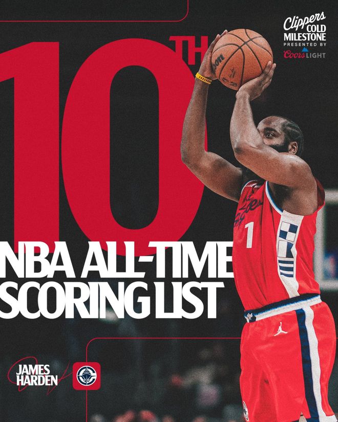 哈登34+5+6跻身历史得分前10快船惜败森林狼,小卡20分华子15+6