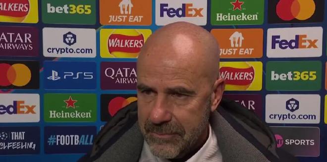 在客场4-1战胜利物浦的赛后,埃因霍温主帅博斯接受了TNT体育的采访。
